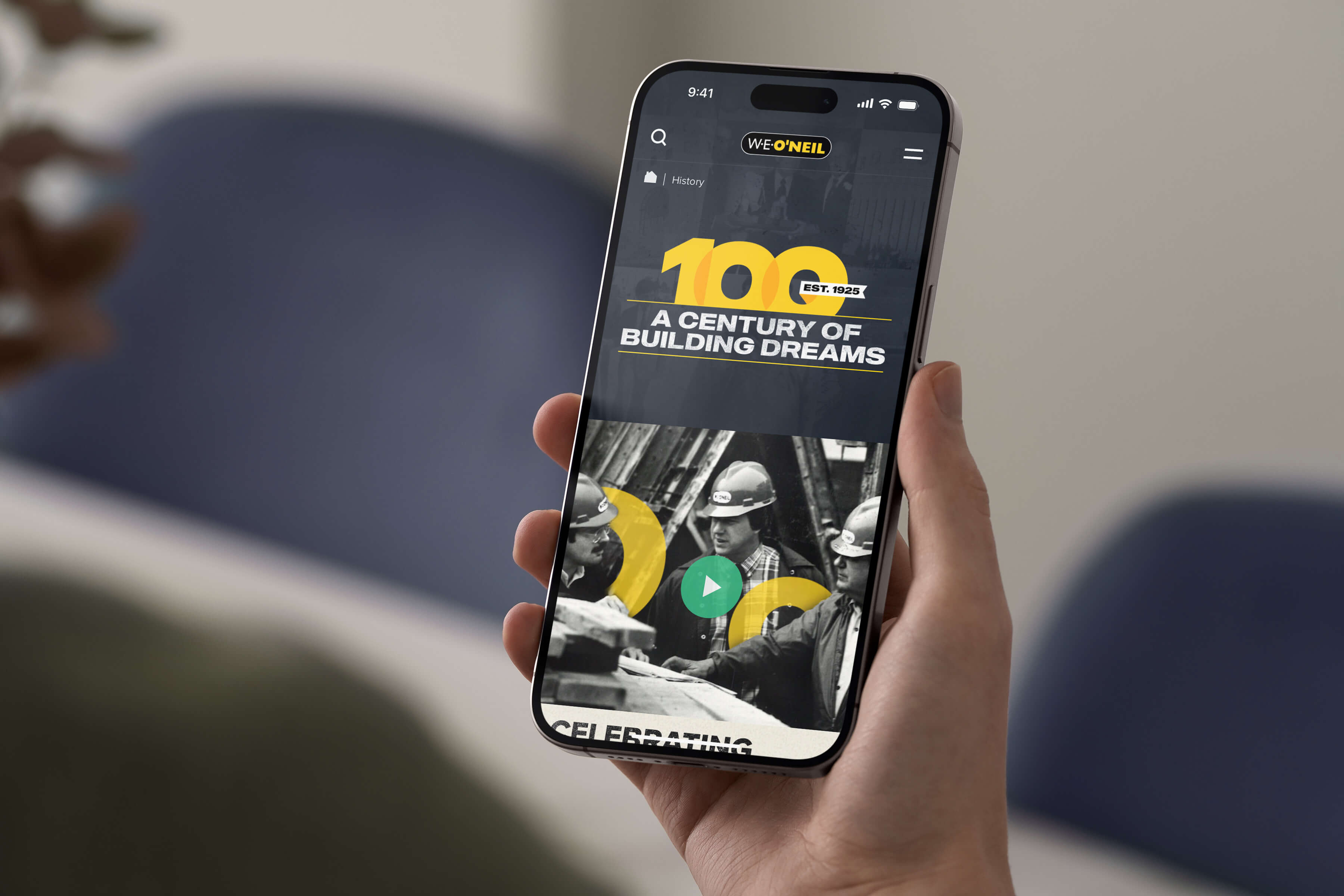 Marking a hundred years is no small task. It calls for intention and a clear sense of what deserves to be celebrated. W.E. O'Neil has countless milestones that define their legacy, and their commitment to honoring that history made this project possible. Their team created the initial centennial mark, and we refined it and expanded it into a rich interactive microsite that tells the story of their first century. The experience brings together timelines, Hall of Fame inductees, defining projects, and a supporting documentary. The result is a focused, memorable tribute that reflects the relationships, achievements, and spirit that have shaped W.E. O'Neil over the last hundred years.