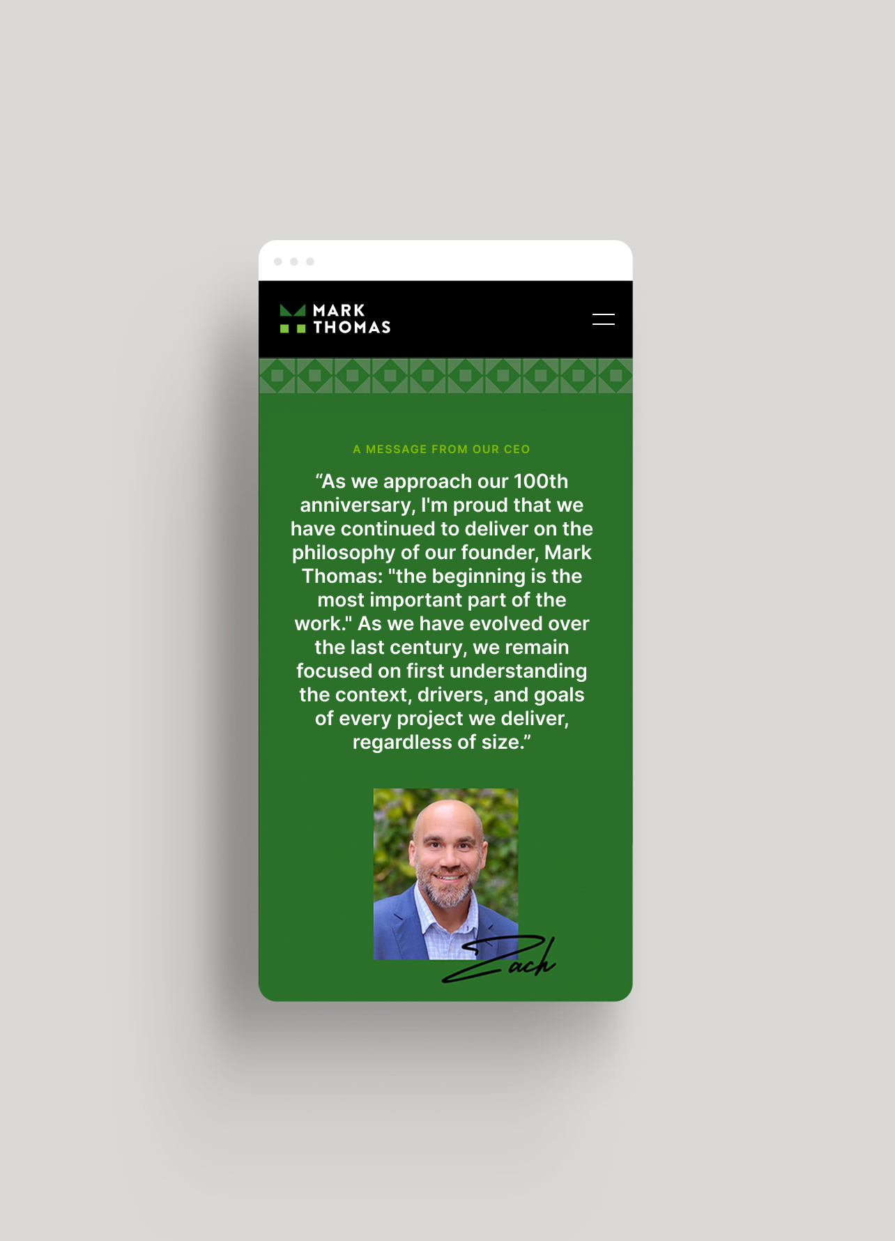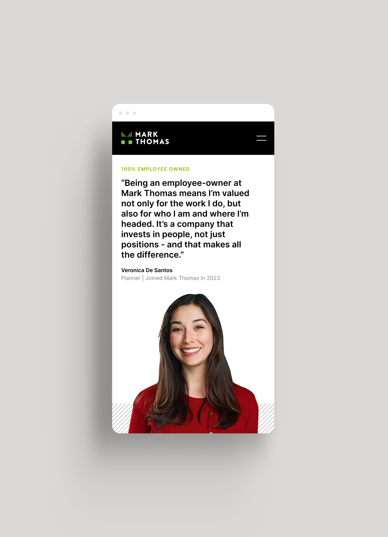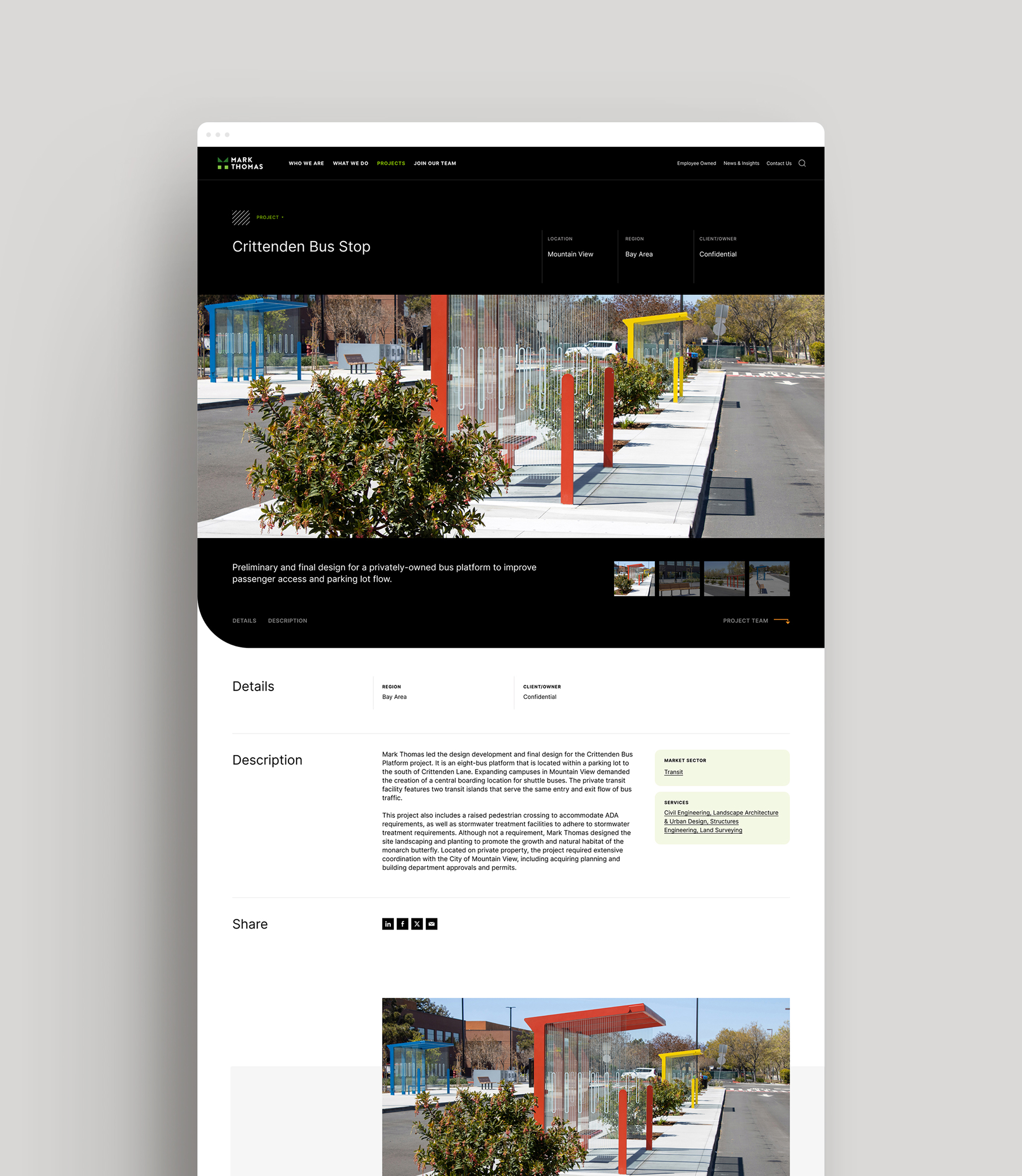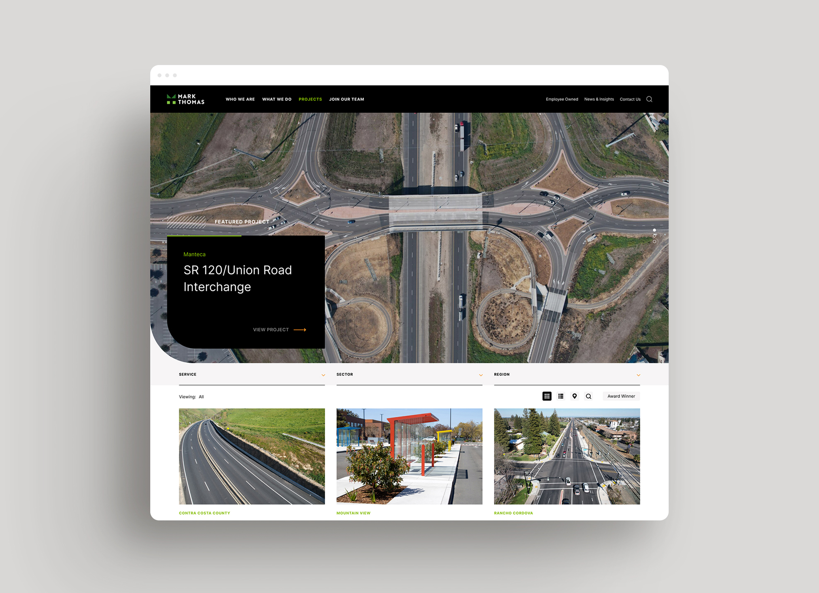 Mark Thomas’ previous website didn’t fully convey how their values shaped the way they delivered solutions. The digital experience lacked branded moments and storytelling opportunities that reflected the company’s collaborative, employee-owned culture and deep connections with clients and communities. The challenge was to better express who they are—not just what they do—through both design and content.