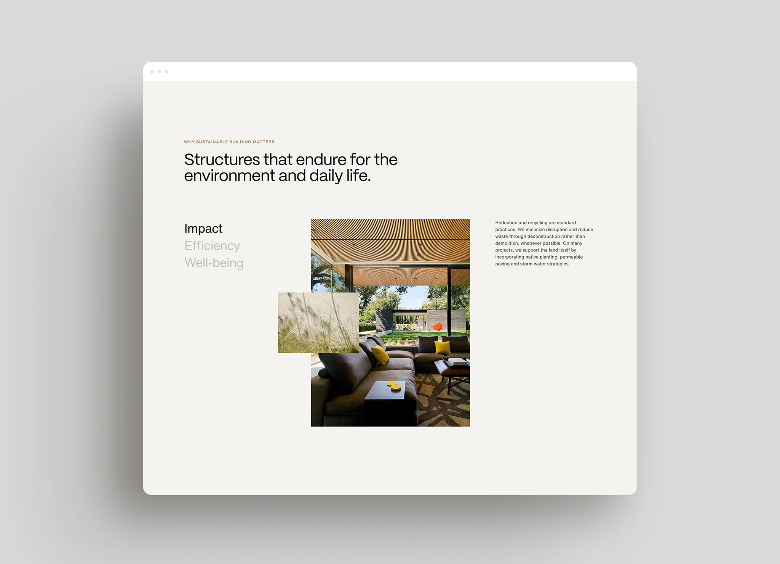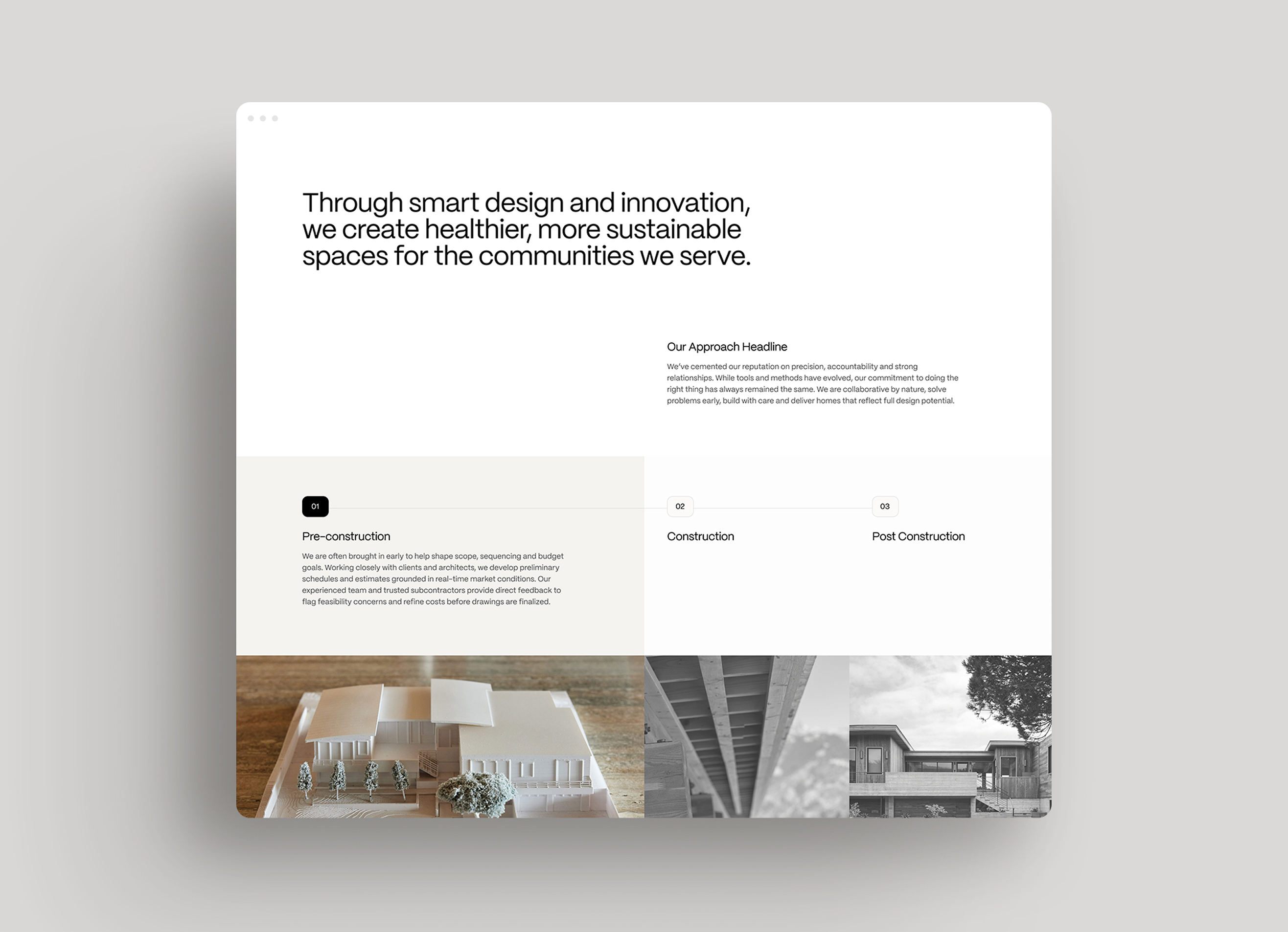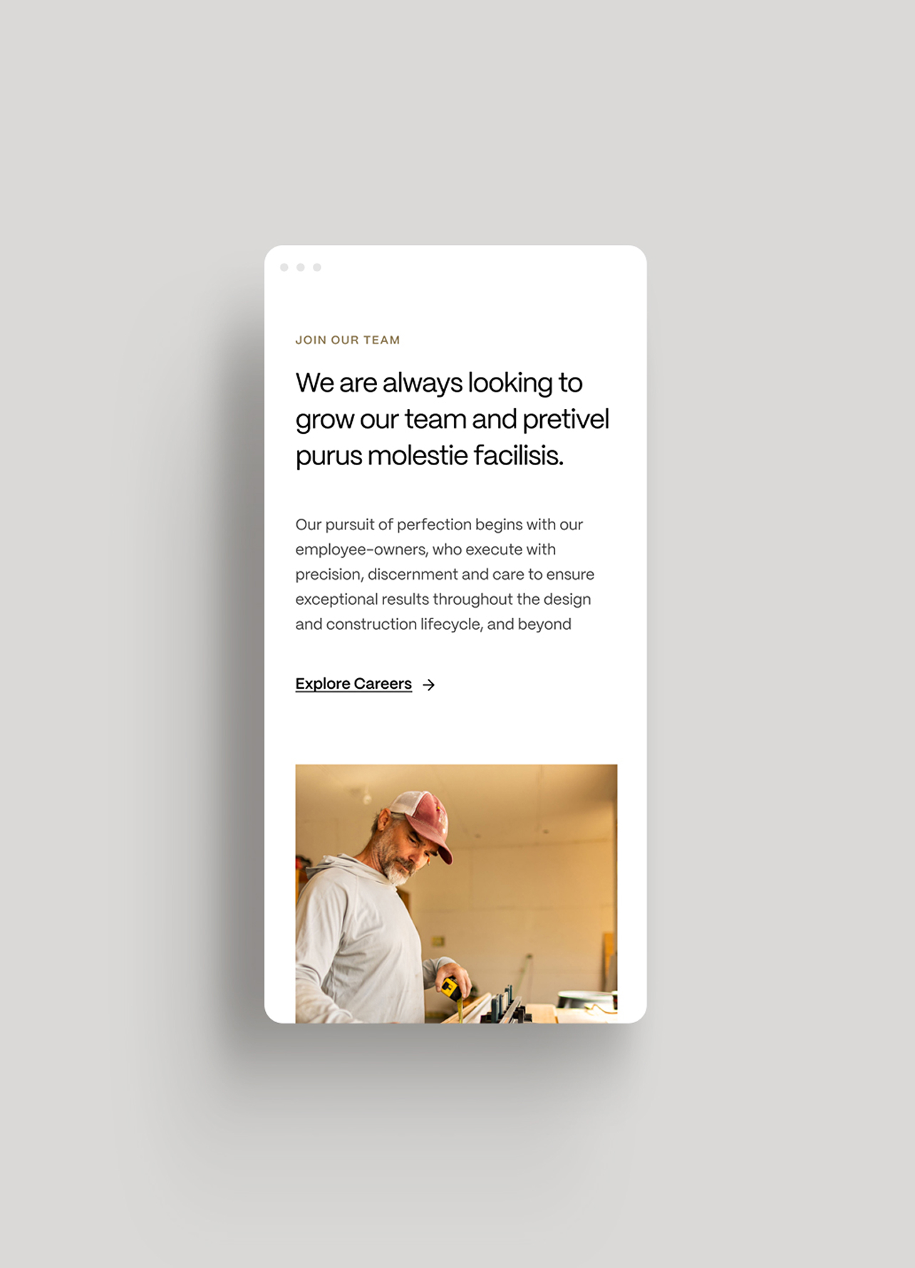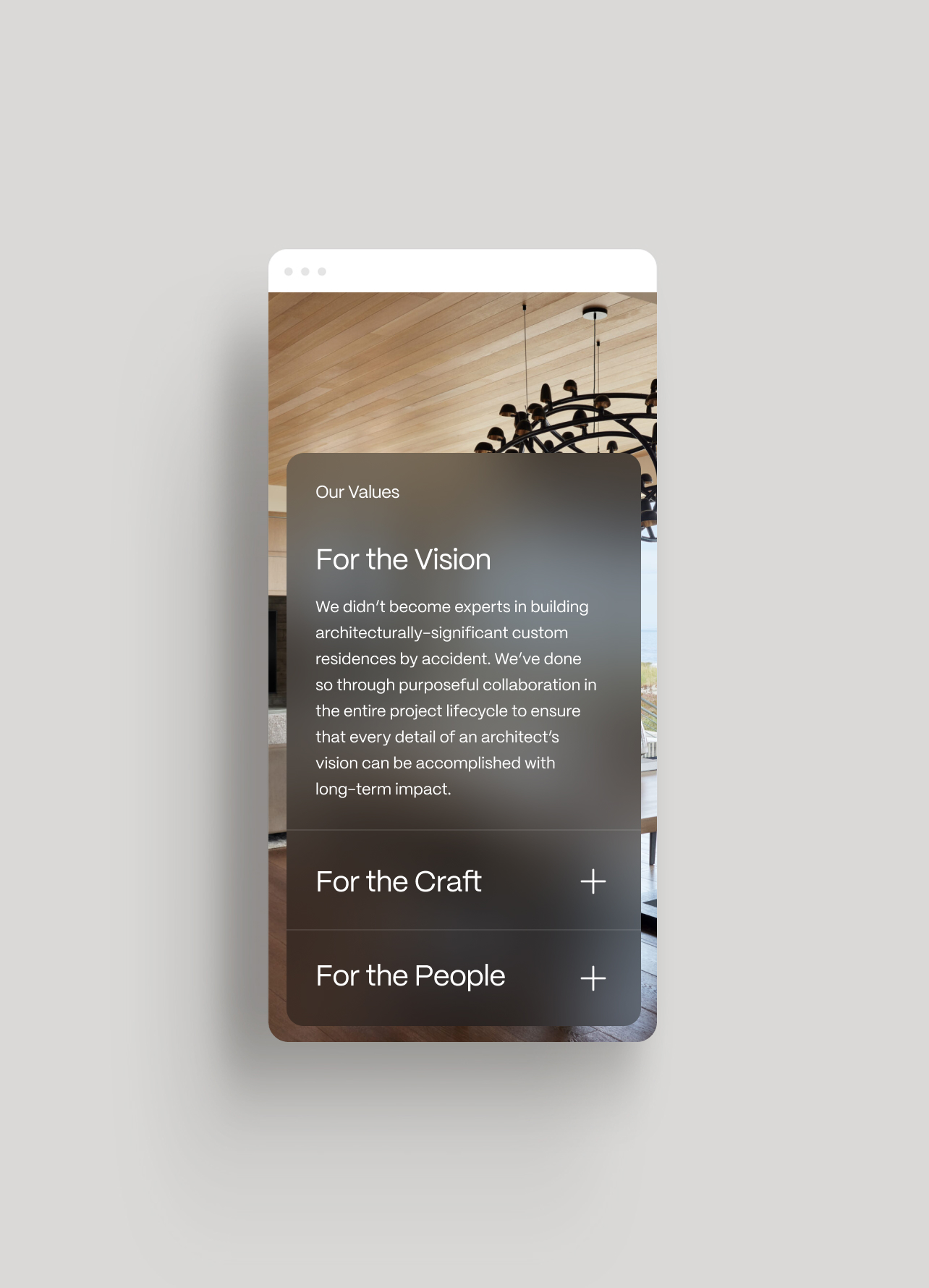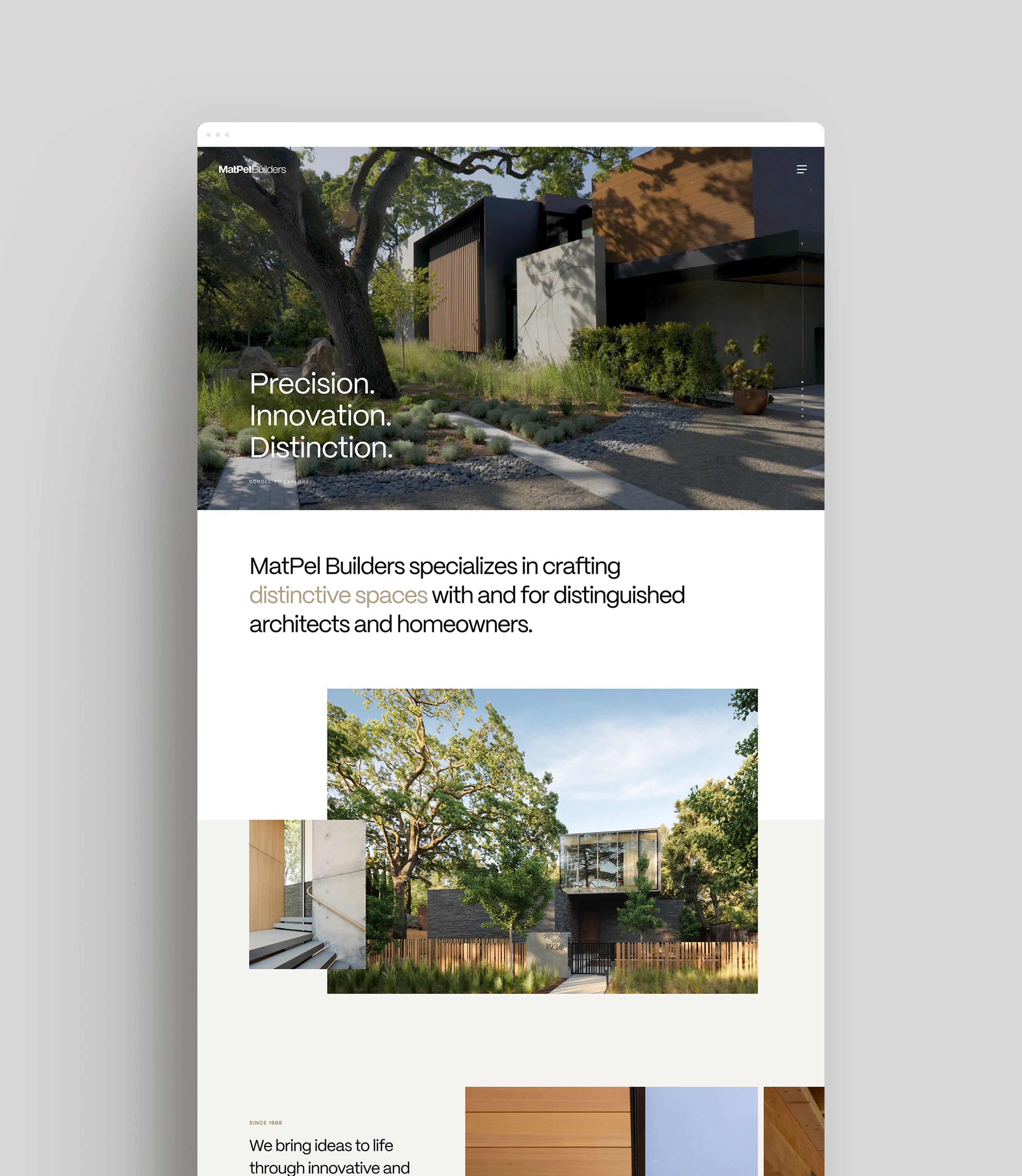 The website design came together quickly once the branding work was complete. High-end candid and builder-centric project photography beautifully showcased their craftsmanship, while also highlighting precision methods and materials. Our design approach was simple: avoid overly designed UI elements and let typography, space, and photography convey excellence in the building space. The result is a refined, understated digital experience that brings MatPel’s people and work to the forefront.