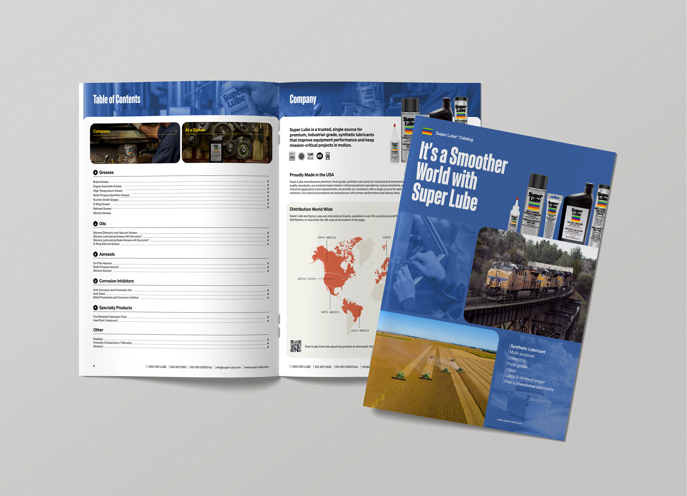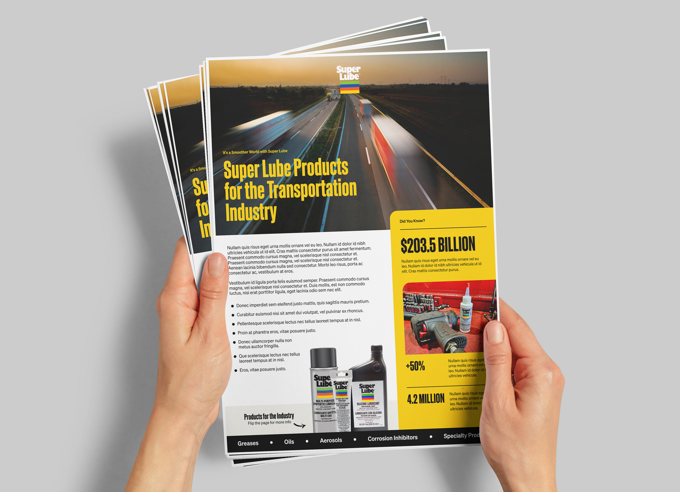 Following the successful website launch, Super Lube’s marketing team faced a new challenge: aligning their sales and promotional materials with the refreshed brand. Their existing collateral lacked cohesion and energy, making it difficult for the sales team to present a unified, modern story across all channels. We stepped in to update their brand guidelines with the new design elements introduced during the site redesign, and created an entirely new suite of marketing materials.