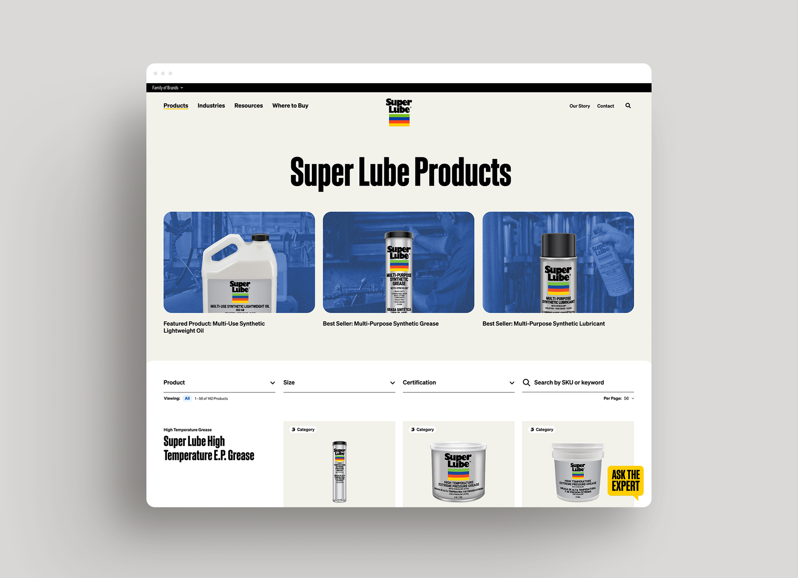 Super Lube manufactures premium, food-grade synthetic lubricants for industrial and mechanical applications. Like their sister-brand, Kroil, they are part of the Kano Laboratories family. Our success with Kroil naturally led to this collaboration. The goal was to modernize a dated brand. We embraced the challenge by reimagining their use of typography and color to create a more confident, contemporary look. The dynamic new website was also supported by a robust CMS, giving their team full control over managing and evolving their digital presence.
