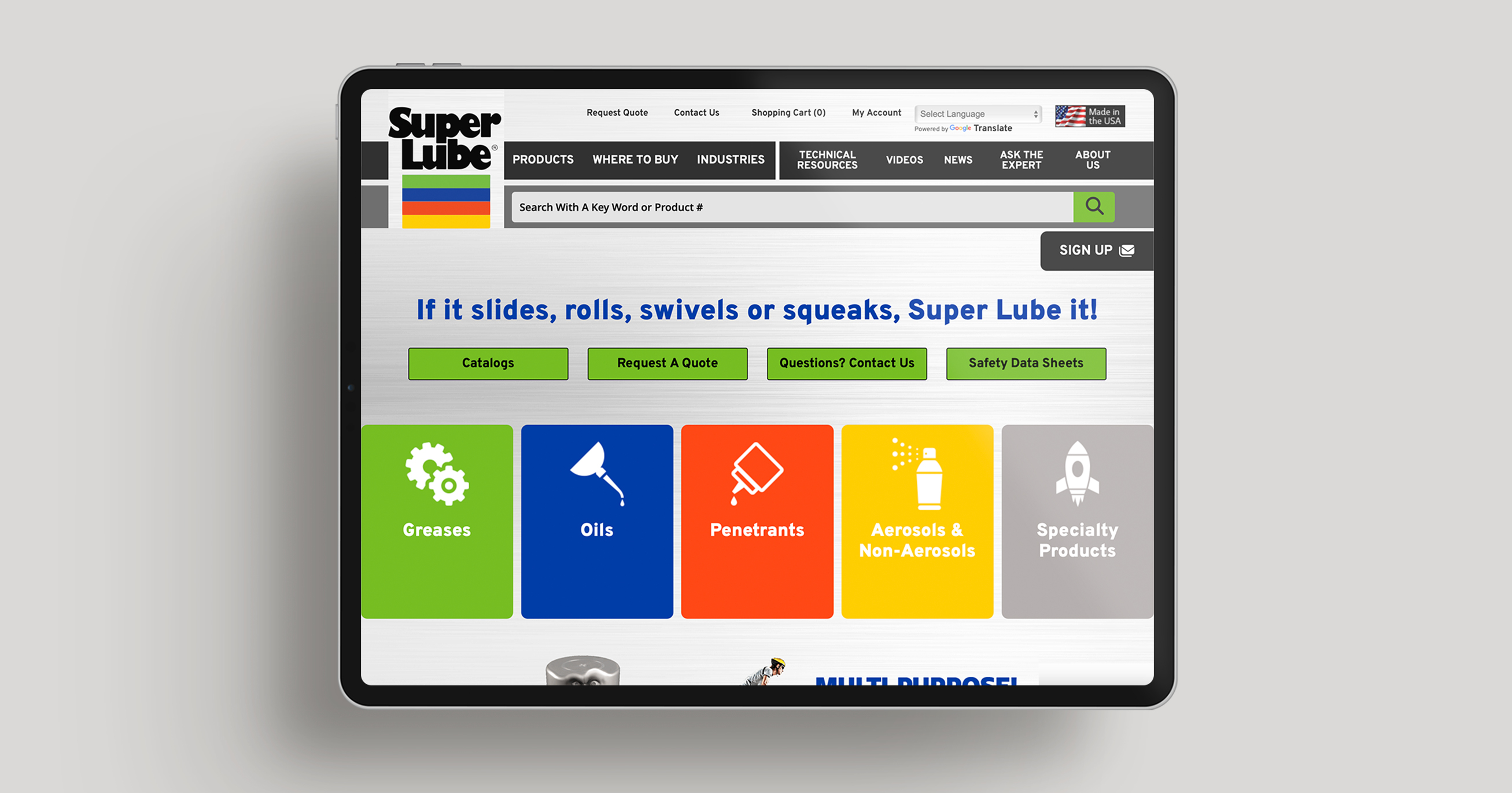 This included redesigned product catalogs, case studies, and sell sheet templates tailored to specific industries, ensuring the right products were matched to the right applications. We also developed co-branded tradeshow banners, and fun leave-behind items like koozies for both Kroil and Super Lube. Each new piece reflected the website’s updated look, feel, and tone—delivering a cohesive, revitalized brand experience that energized the sales team and reinforced Super Lube’s growing market presence.