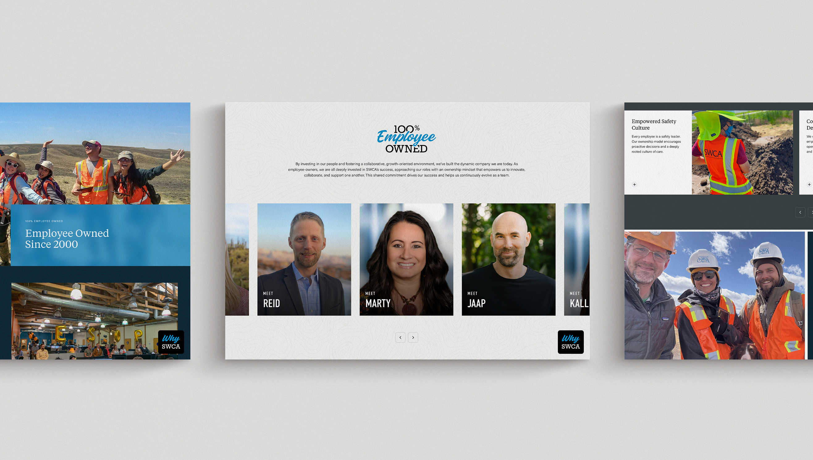 We reimagined the site architecture to create a more intuitive, layered experience. The new design introduced modular layouts that provided flexibility for storytelling and alignment with updated brand guidelines. On the development side, both front-end and back-end systems were optimized for speed, accessibility, and ease of use, giving SWCA’s internal team the tools to confidently showcase their leadership in environmental consulting.